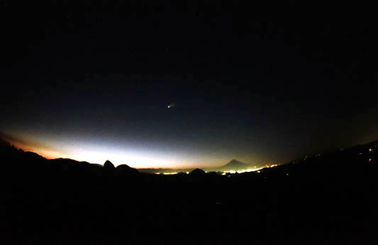 カメラはニコンF4、レンズは16ミリフィシュアイ、フィルムは富士スーパーG800、 露光時間は1分、絞り5.6。