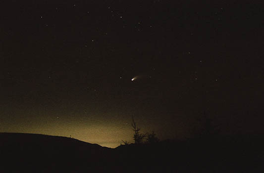 撮影時刻は1997年4月1日午後6時50分ごろ。 撮影地は長野県霧ヶ峰。 カメラはニコンF4、レンズは24ミリ、フィルムは富士スーパーG800、露光時間30秒、絞り2.8(解放)。