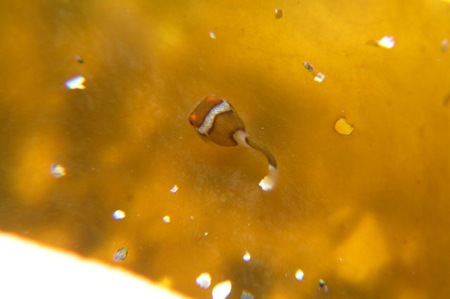 それから、今年もダンゴウオが産卵してます。巣穴の中で卵を守ってました。