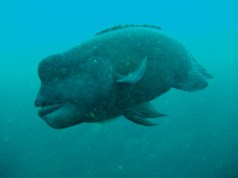 透明度落ちてしまいました(;_;)春濁りの始まりでしょうか・・・? 本日もコブダイ狙いで潜ってきました・・・が、なぜか今日は近寄らせてくれません!? 呼ぶとこちらを向くのですが、何かに脅える様に凄いスピードで逃げて行きます。逆光で写るダイバーの影にが何か怖い物に見えたのでしょうか?