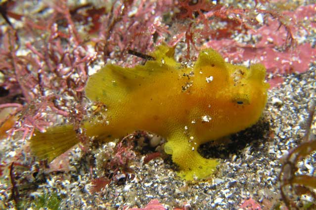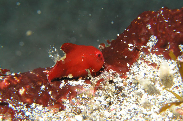 台風の影響でうねりが入ってます。7日現在なんと太平洋上に3つも居ます!! しばらくうねりが入って来る事でしょう・・・ 水深30メートルより浅い所は20〜23度と暖かい水ですが透明度は5〜10程度です。 30メートル以深は14〜18度と冷たいのですが、透明度抜群でした。 深場の水温が低いのでダンゴウオはまだ居ます。